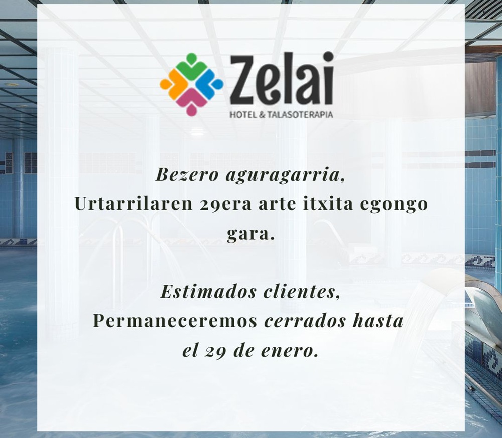 Gelak Atsedenaldia 26 gela ditu, dekorazio erraz eta minimalistarekin. Horietako batzuk itsasoari begira daude. Guztiek dituzte TB laua, doako WiFi-a, aire girotua eta berogailua, garbitzeko doako artikuluak, bainu-bata eta ile-lehorgailua. INFORMAZIO GEHIAGO Programak Hidroterapia eta osasuna Erlaxazioa eta ongizate fisikoa lortzeko programak, hidroterapiako teknika modernoenak eta estetika tratamenduak erabiliz. Era askotako tratamenduak eskaintzen dituen talasoterapia-zentroa du. Gure filosofia: Itsasoko ura terapia gisa. INFORMAZIO GEHIAGO